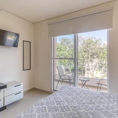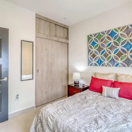 Villa Flamingos 437F at Selvanova 4B, som ligger inom 6 minuters promenad från SAYAB Planetario de Playa del Carmen, lockar gästerna med utsikt över poolen.
